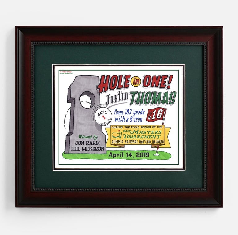 If you’re fortunate enough to make an ace in your golf career, you should commemorate it in the most unique way possible - with personalized artwork by the same guy who’s been doing it for years at the highest level of the sport!